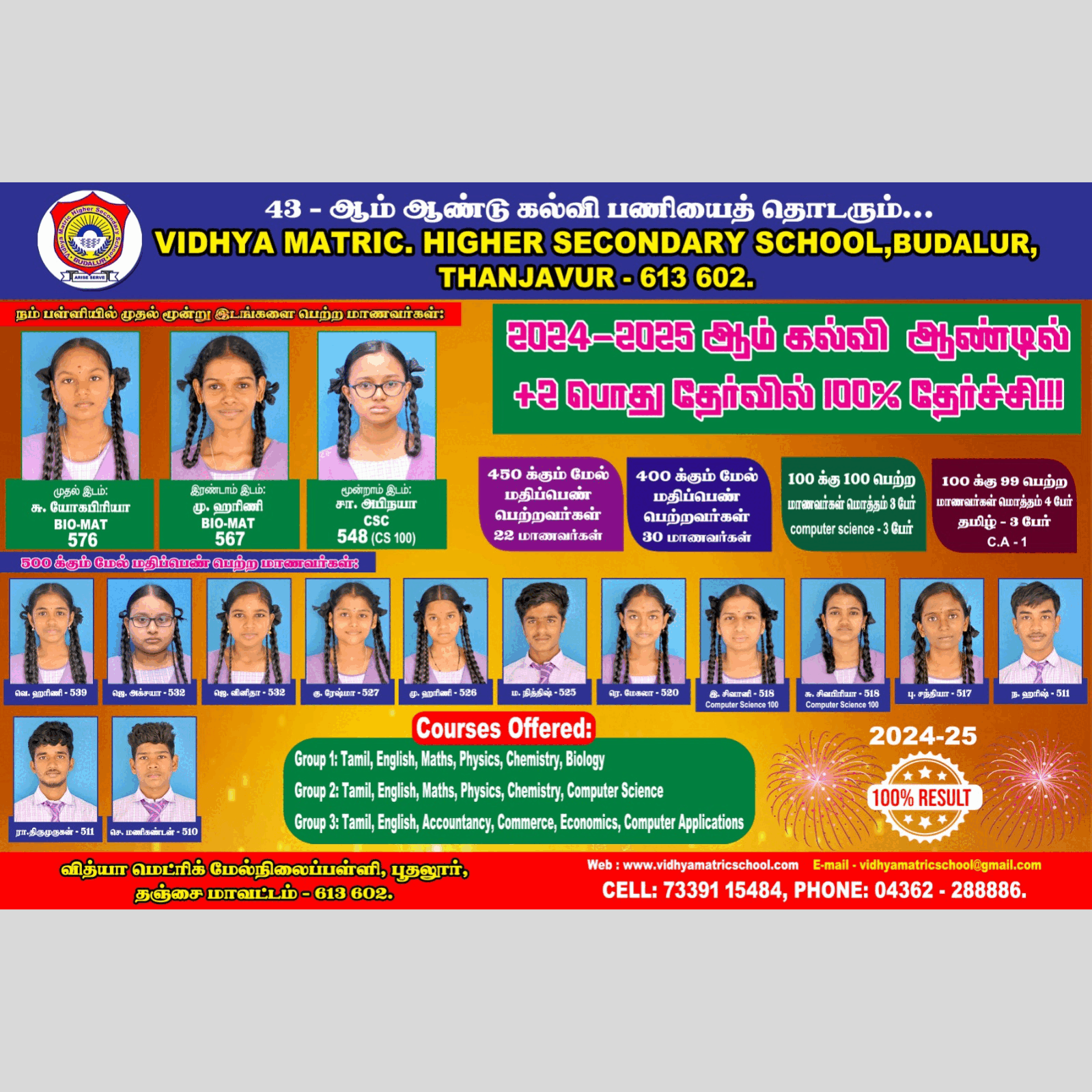 Choosing Vidhya Matric Higher Secondary School-Budalur means choosing a legacy of excellence and a future of endless possibilities..